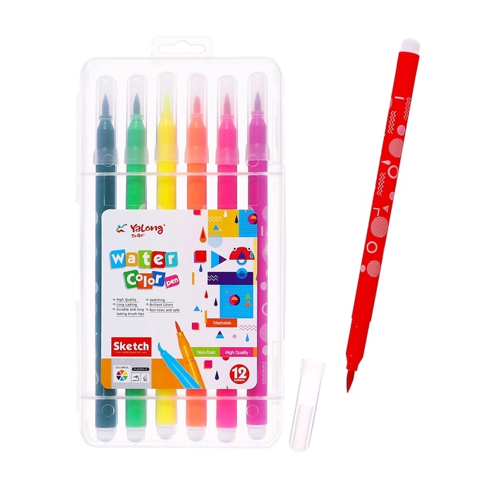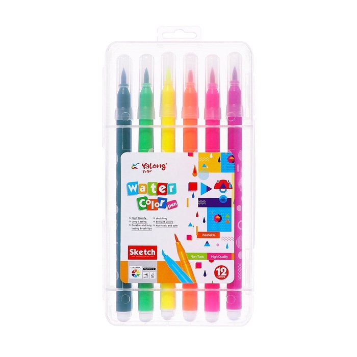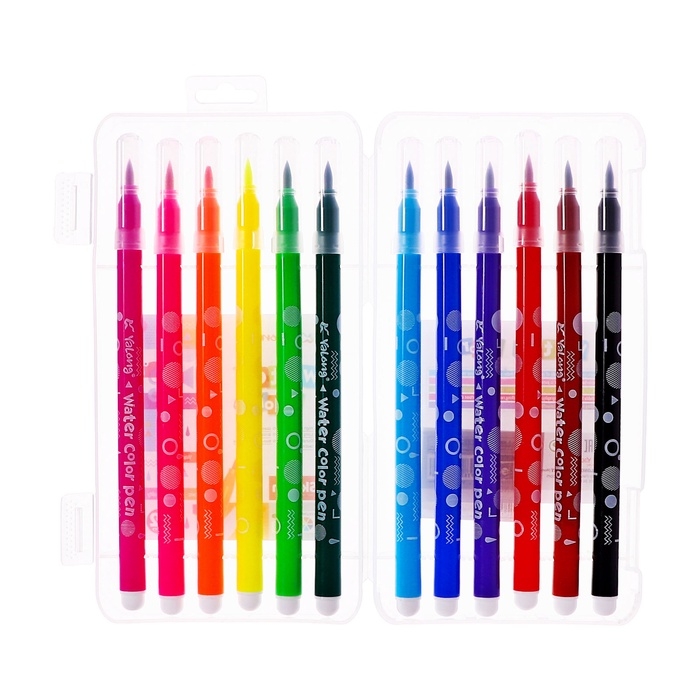 Набор акварельных маркеров 12 цветов с наконечником кистью в пластиковом пенале