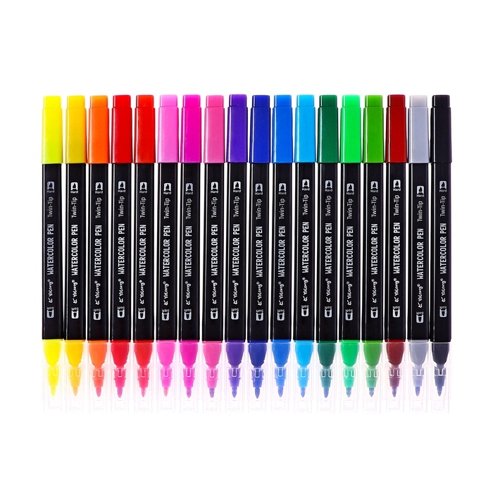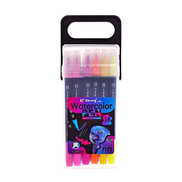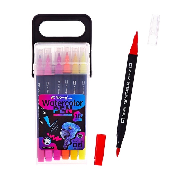 Набор маркеров 18 цветов, двусторонние, черный корпус в пластиковом пенале