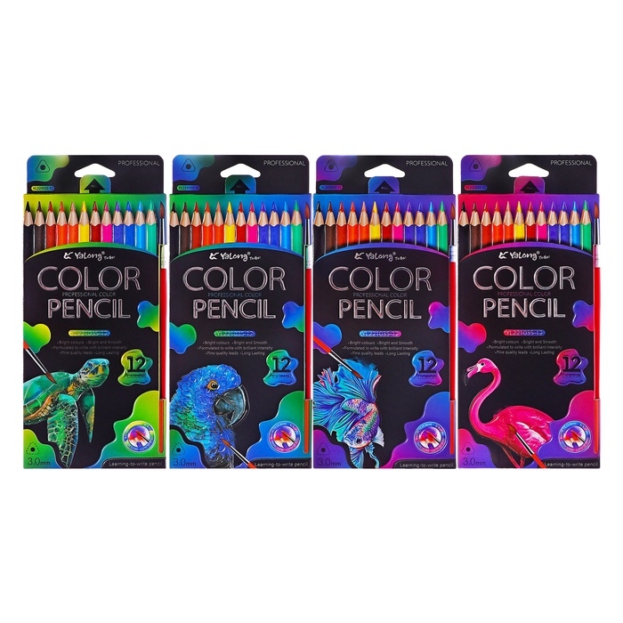 Карандаши акварельные 12 цветов, в картонной коробке, треугольные,дер, с кист,Животные МИКС