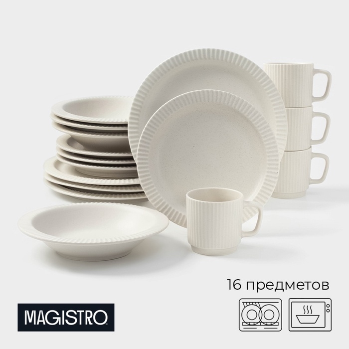 Набор посуды Magistro Jarwah Lausanne, 16 предметов, фарфор, серый