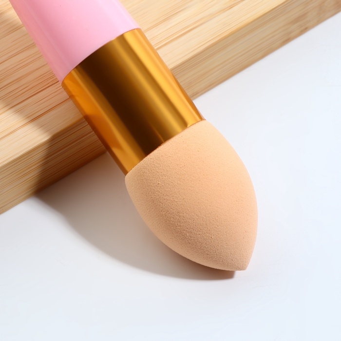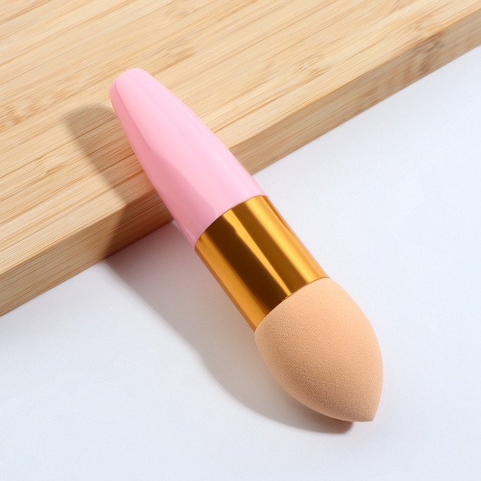 Спонж для макияжа с ручкой «Капля», 10 × 2,5 см, цвет бежевый/розовый