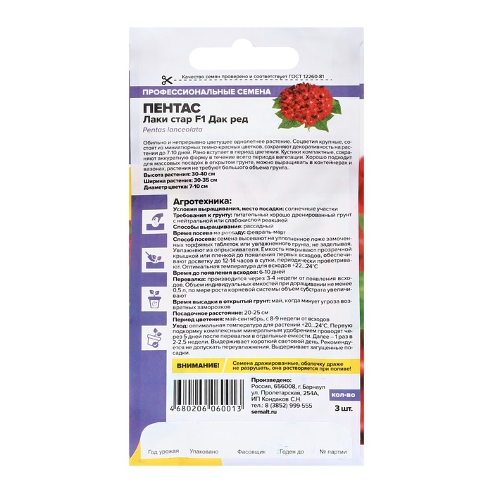 Семена цветов Пентас "Лаки стар" F1 Дак ред ланцетовидный, ц/п, 3 шт.