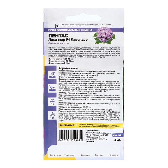 Семена цветов Пентас "Лаки стар" F1 Лавендер ланцетовидный, ц/п, 3 шт.