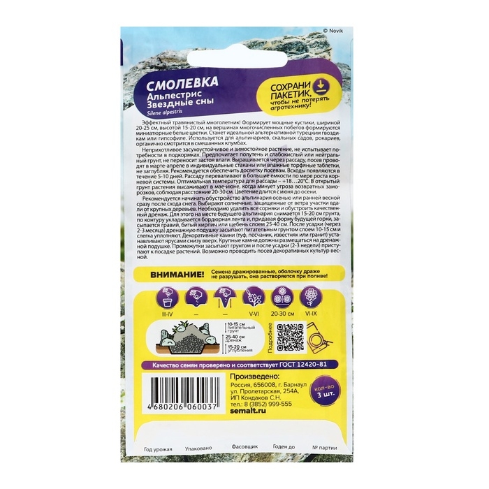 Семена цветов Смолевка Альпестрис "Звездные сны", ц/п, 3 шт.