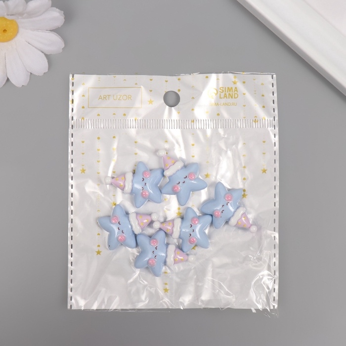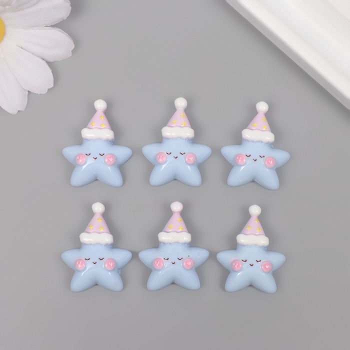 Декор для творчества пластик "Звездочка в колпаке" набор 6 ш 2,7х2,5х0,8 см