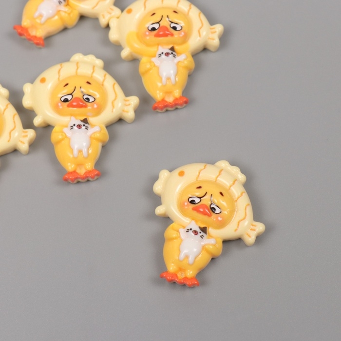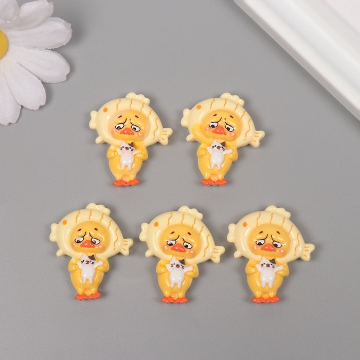 Декор для творчества пластик "Утёнок в шапке-рыбке" набор 5 ш 3,3х2,8х1 см