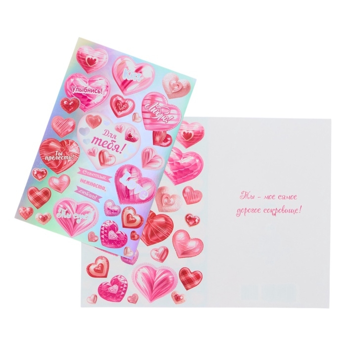 Открытка «Для тебя!» сердечки, конгрев, тиснение, 12,5 × 19,5 см
