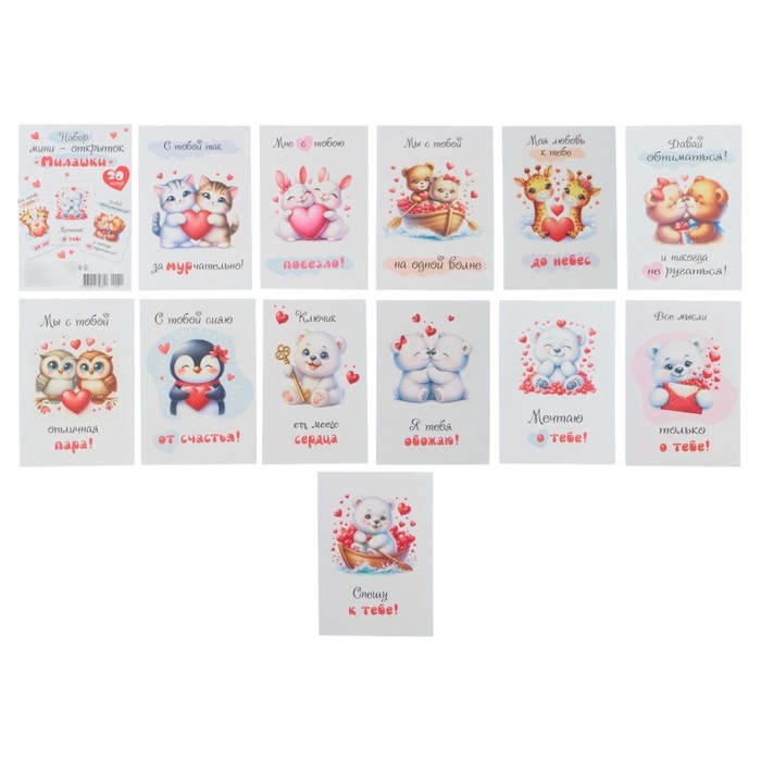 Набор мини-открыток «Милашки» 20 штук, 7,5 × 10,5 см