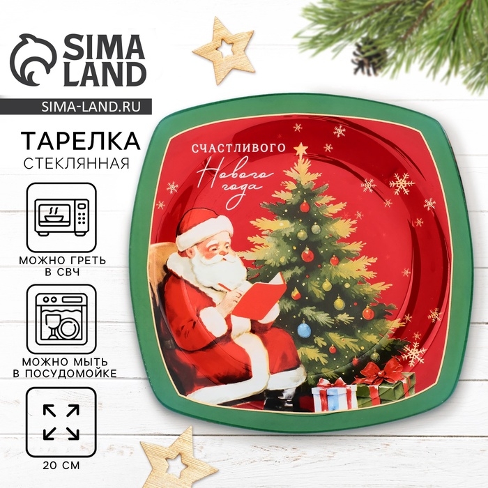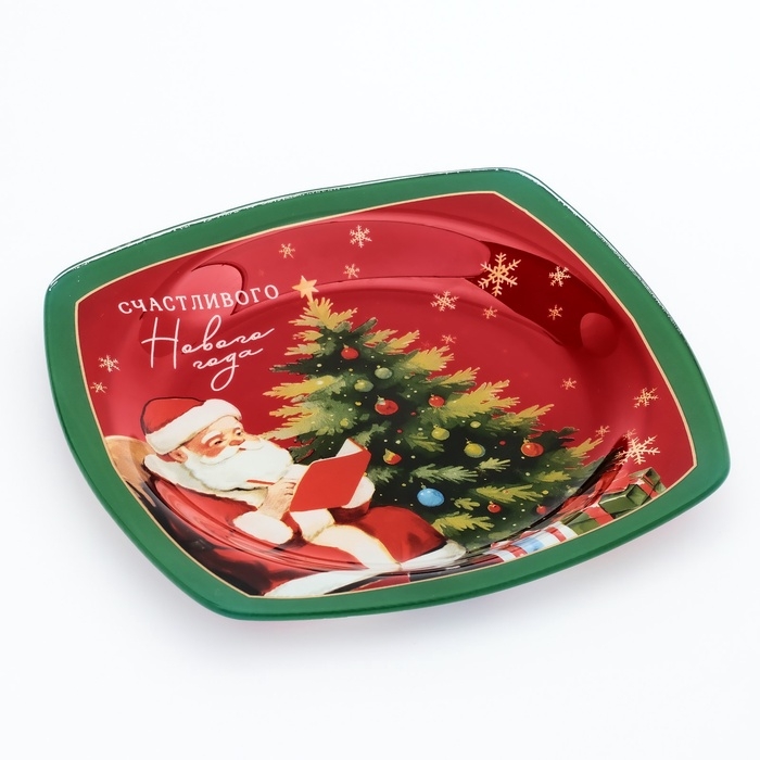 Тарелка плоская новогодняя Дорого внимание «Счастливого Нового года», 20 см, стекло