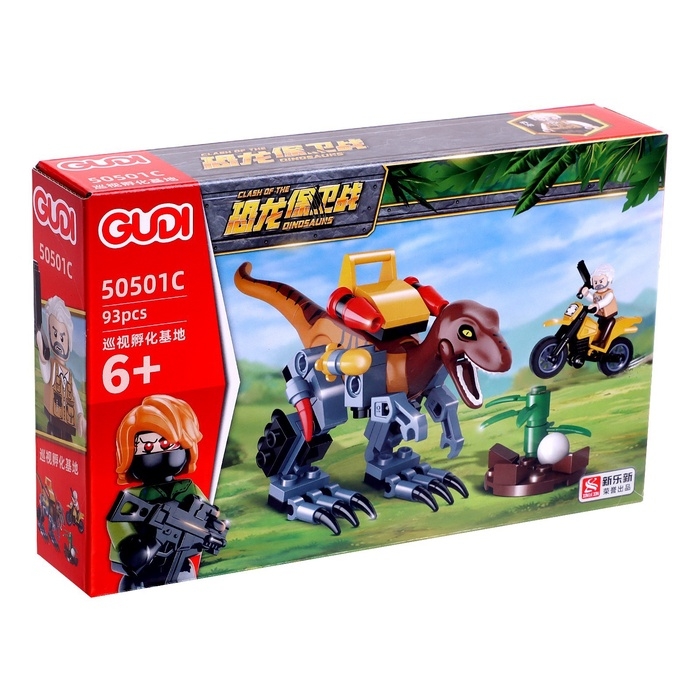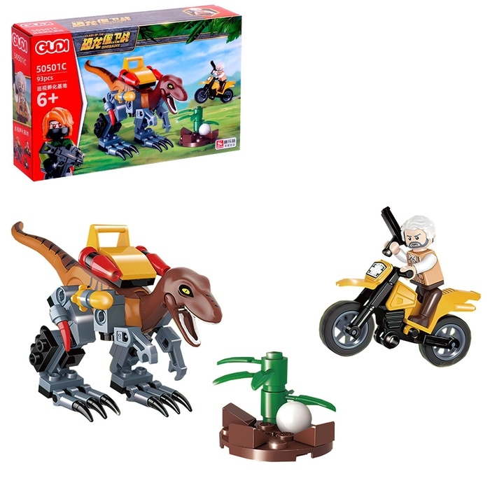 Конструктор Дино «Мотоциклист против динозавра», 93 детали