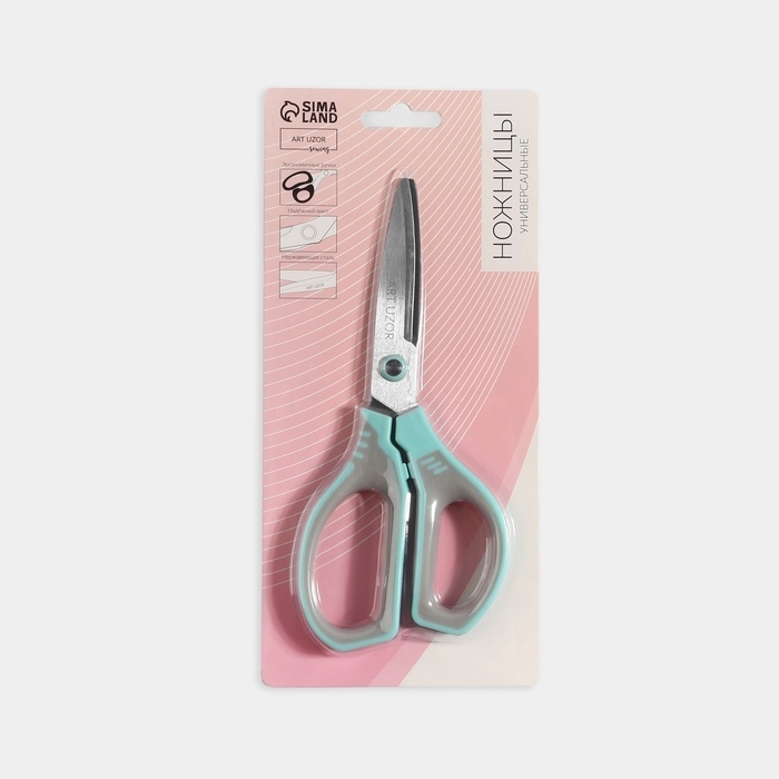 Универсальные ножницы подходят для работы с бумагой, картоном, полиэтиленом. Ножницы удобно лежат в руке, а их острые лезвия обеспечивают идеально ровный срез.
