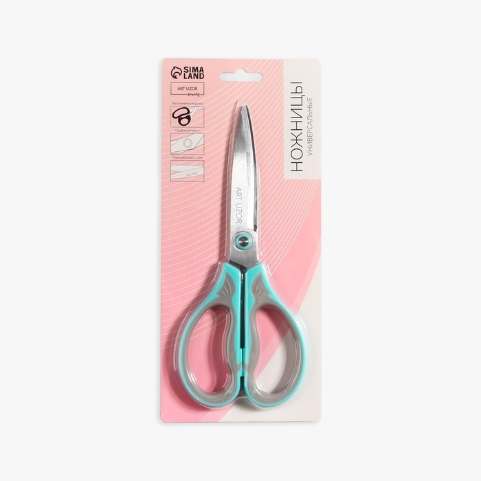 Универсальные ножницы подходят для работы с бумагой, картоном, полиэтиленом. Ножницы удобно лежат в руке, а их острые лезвия обеспечивают идеально ровный срез.