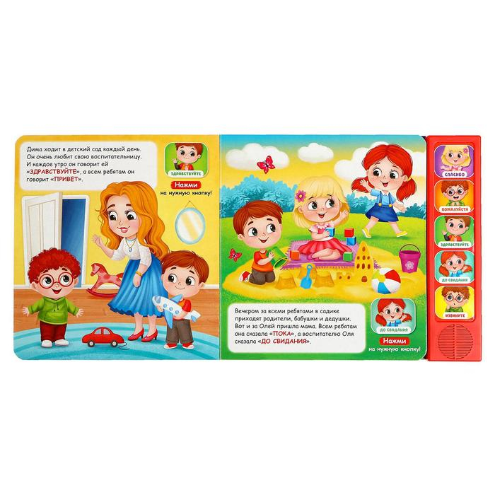 Знакомить ребёнка с правилами вежливого общения важно с самого раннего возраста. Освоить этот навык в игровой форме поможет музыкальная книга. С ней малыш познакомится с пятью самыми главными вежливыми словами и научится их правильно произносить.