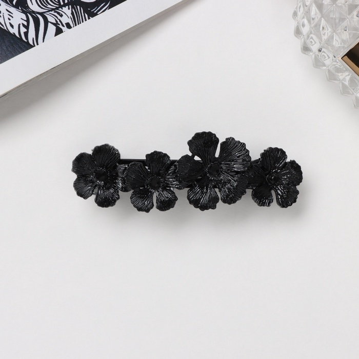 Заколка-автомат "Эстер" цветы, 8 см, чёрный