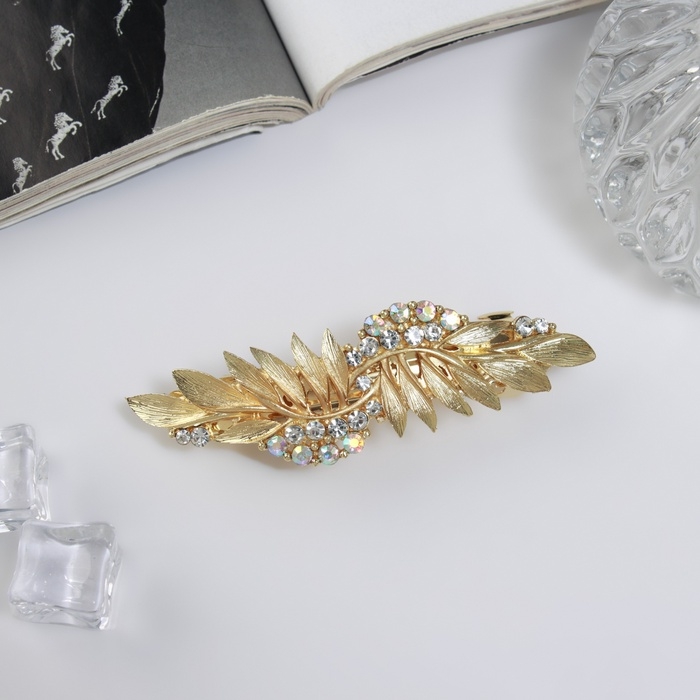 Заколка-автомат "Шерри" листья, 9 см, золото