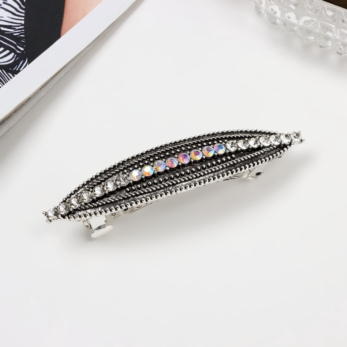 Заколка-автомат "Роуз" полоса блеск классик, 9,5 см, серебро
