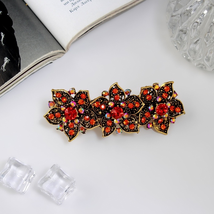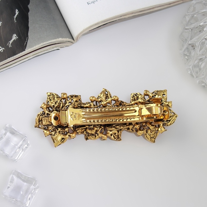Заколка-автомат "Молли" цветы, 9,5 см, золото