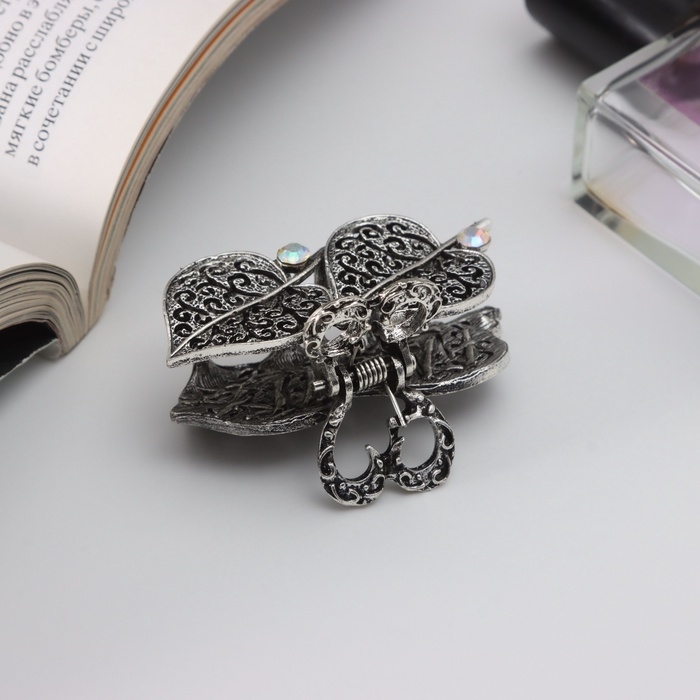 Краб для волос "Лаура" листочки, 5,5 см, серебро