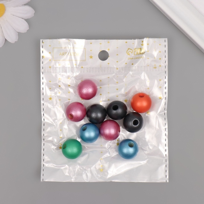 Бусины для творчества дерево "Металлик" набор 10 шт 1,6х1,6х1,6 см