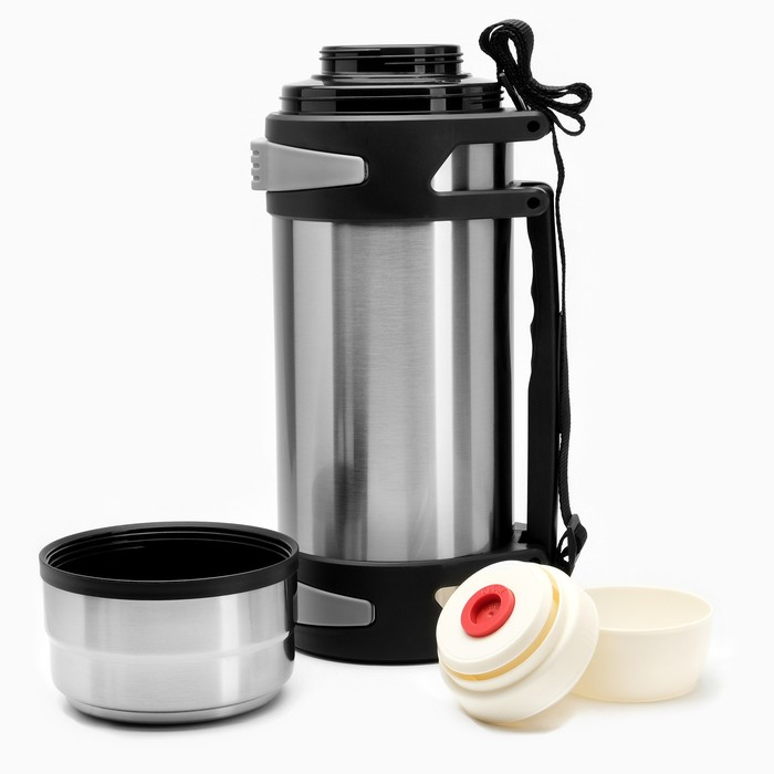 Термос, 4 л, Volume "Колумб", с двумя кружками, с ремешком, сохраняет тепло 24 ч, 15 х 39.8 см, хром