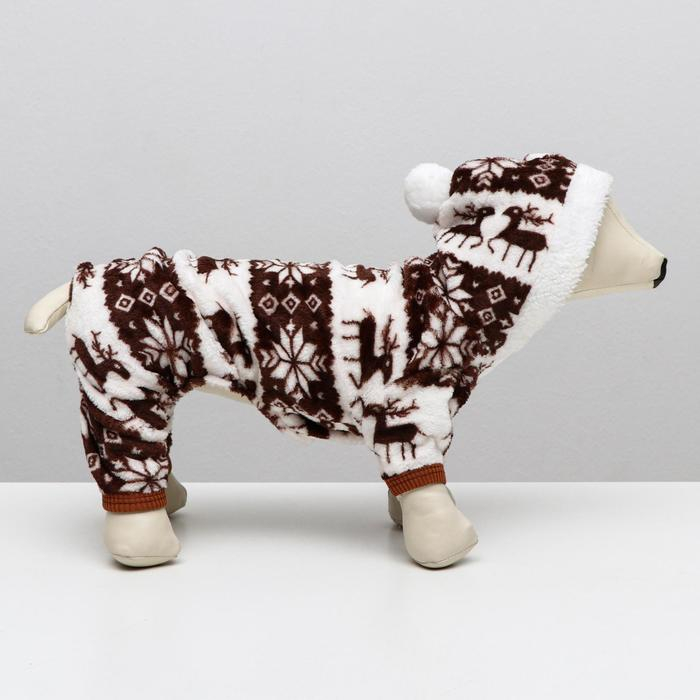 Комбинезон "Олени" с капюшоном, размер S (ДС 25 см, ОГ 35 см, ОШ 25 см), коричневый