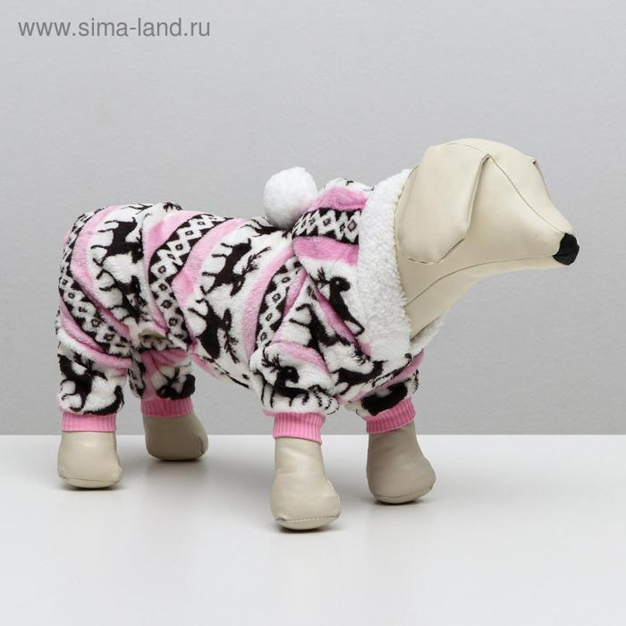 Комбинезон "Олени" с капюшоном, размер XXL (ДС 45 см, ОГ 55 см, ОШ 45 см), розовый