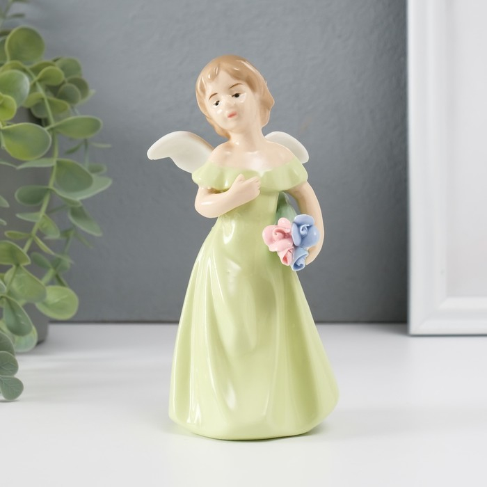 Сувенир керамика "Девочка ангел с букетом" 14х6,5х6 см