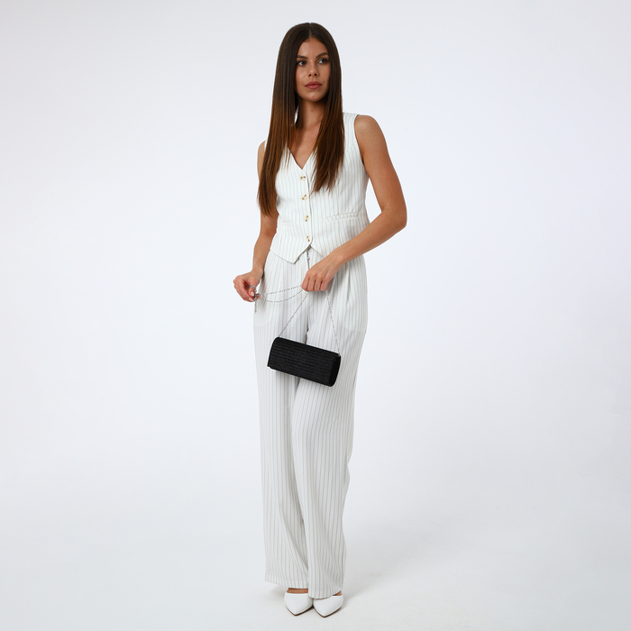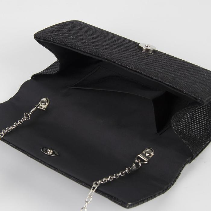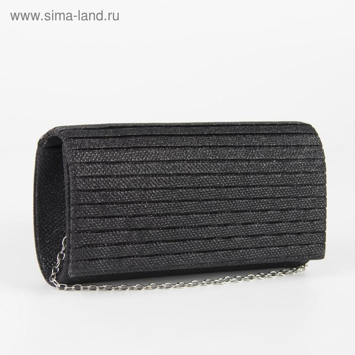 Клатч женский, отдел на клапане, длинная цепь, цвет чёрный