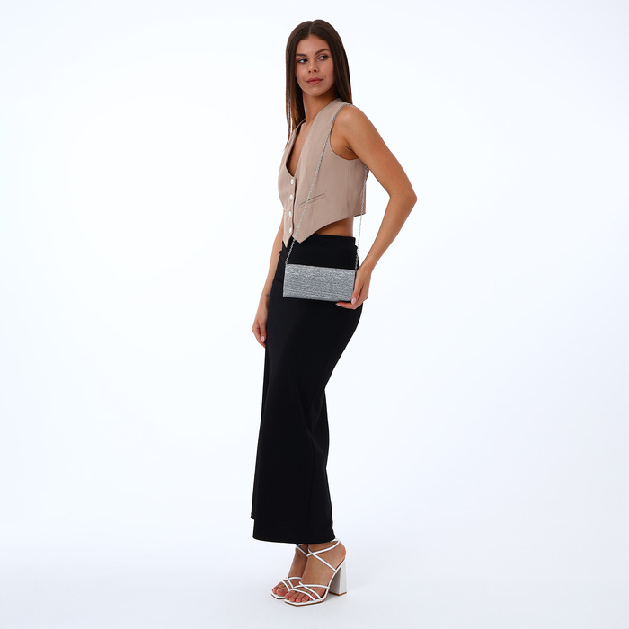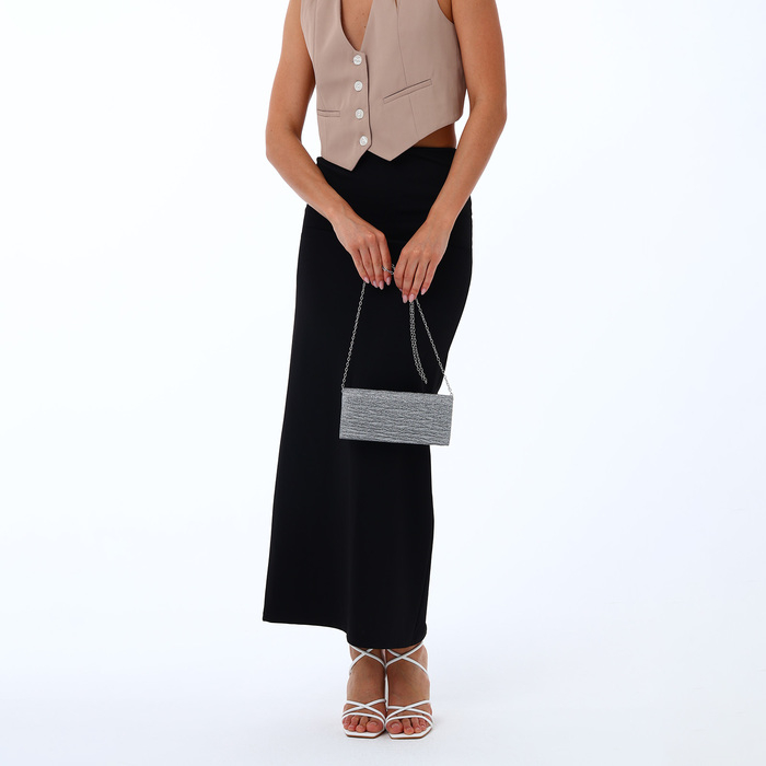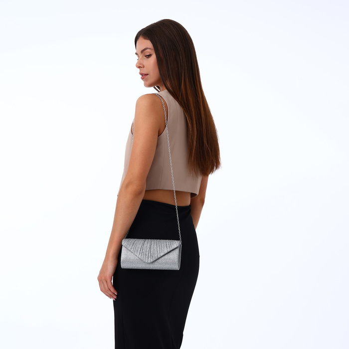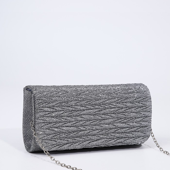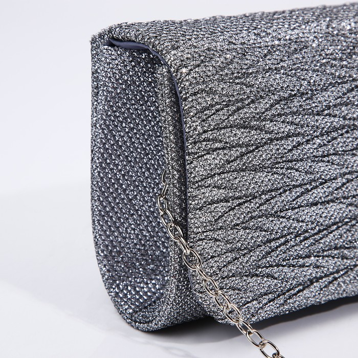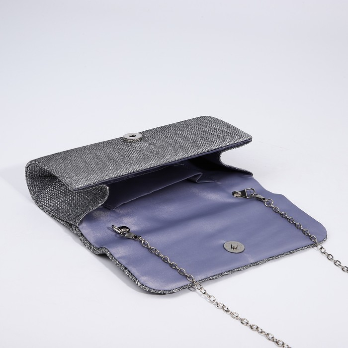 Сумка-клатч на магните, длинная цепь, цвет светло-серый