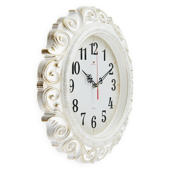 Часы настенные, интерьерные, бесшумные, d-40.5 см, белые с золотом