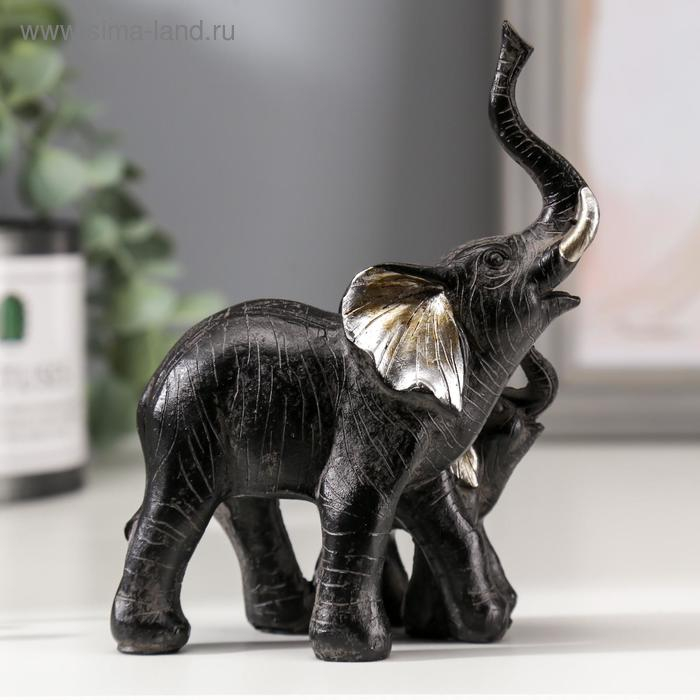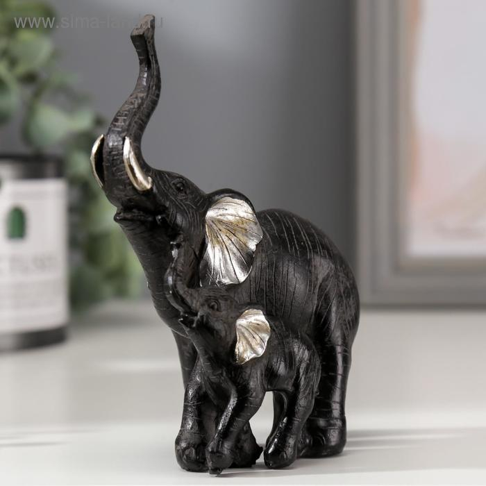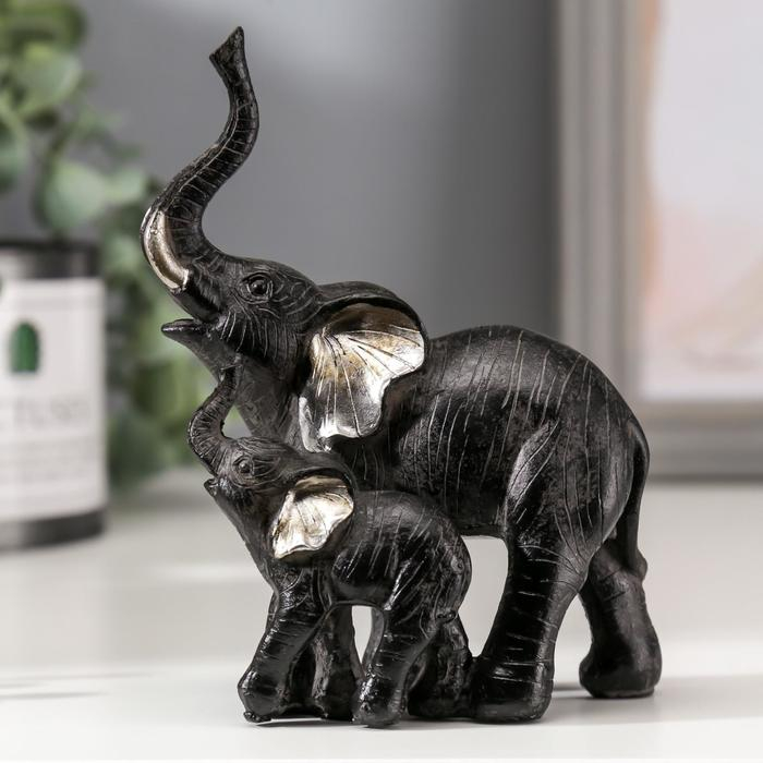 Сувенир полистоун "Слон африканский со слонёнком" 12х10,5х5 см