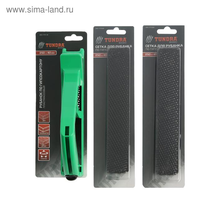 Рубанок по гипсокартону ТУНДРА, пластиковый, 250х40 мм + ПОДАРОК сетки для рубанка - 2 шт.