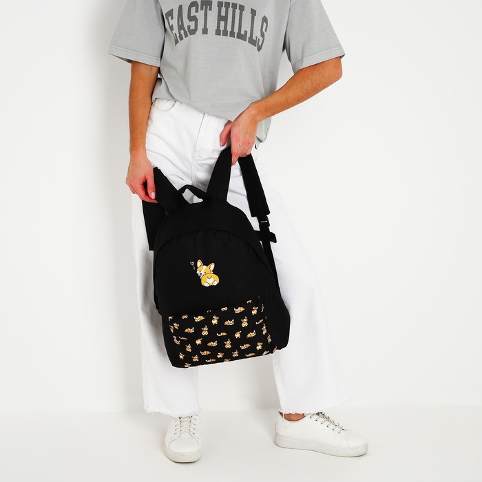 Рюкзак школьный молодёжный «Корги», 33х13х37 см, отдел на молнии, н/карман, чёрный