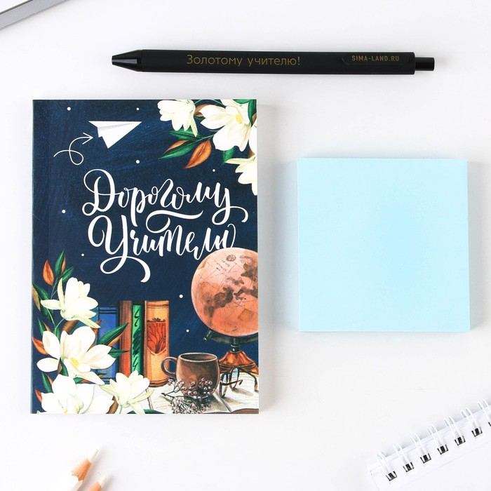 Набор «Дорогому учителю»: ежедневник А6, 64 листа, блок с липким слоем и ручка