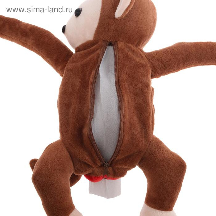 Мягкая салфетница Обезьянка может являться отличным подарком. Эта многофункциональная игрушка не даст соскучиться в дороге. Она изготовлена из мягкого плюша и крепится на подлокотник или подголовник сиденья. Таким образом, очень легко воспользоваться салфетками во время движения. Также в салфетнице можно хранить различные сладости, игрушки и различные мелочи.