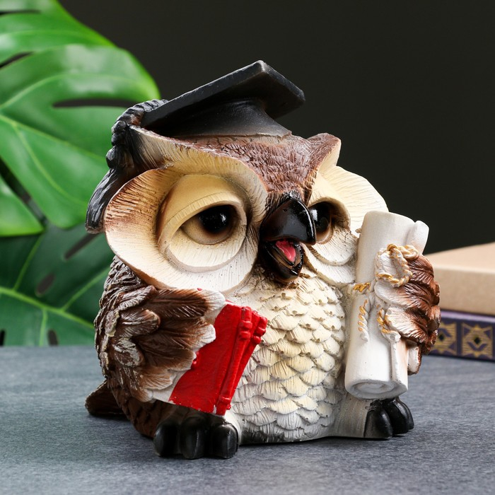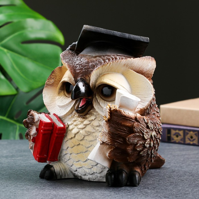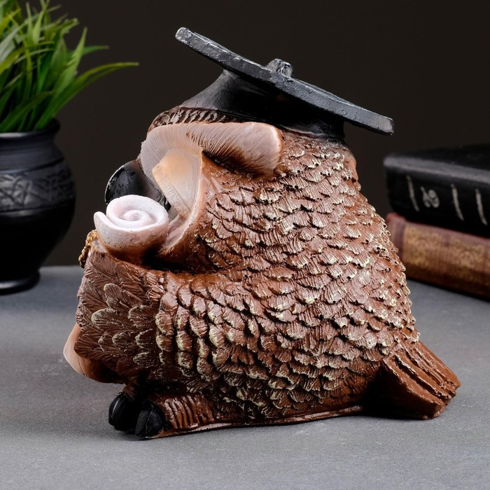 Фигура "Сова ученая" коричневая, 18х17х19см