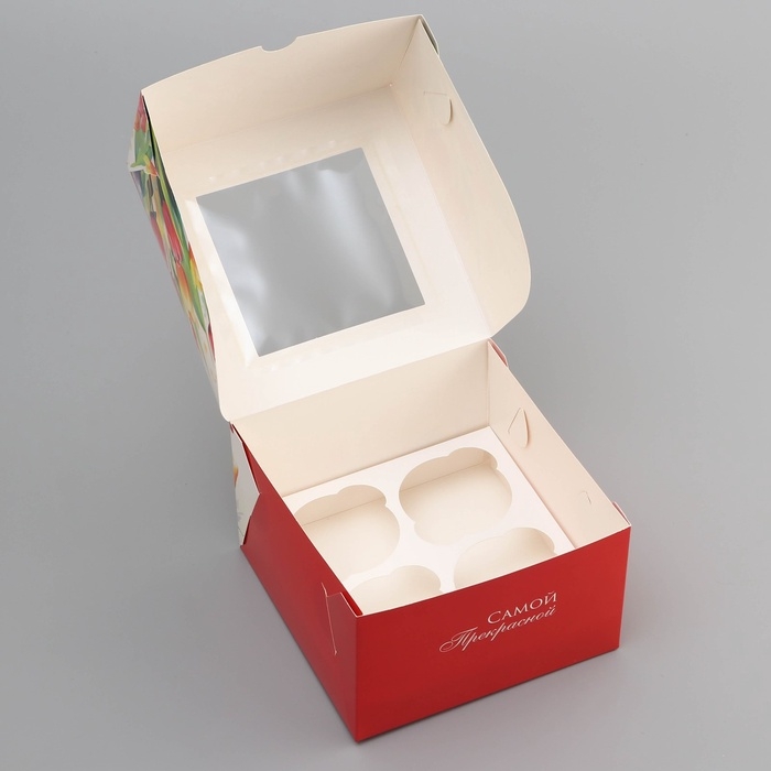 Коробка под 4 капкейка с окном , "Самой прекрасной", 16 х 16 х 10 см, кондитерская упаковка