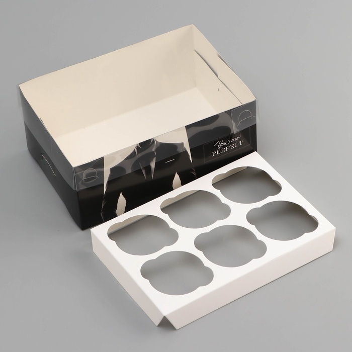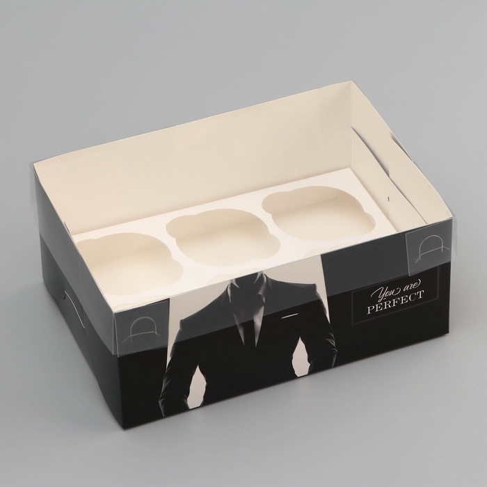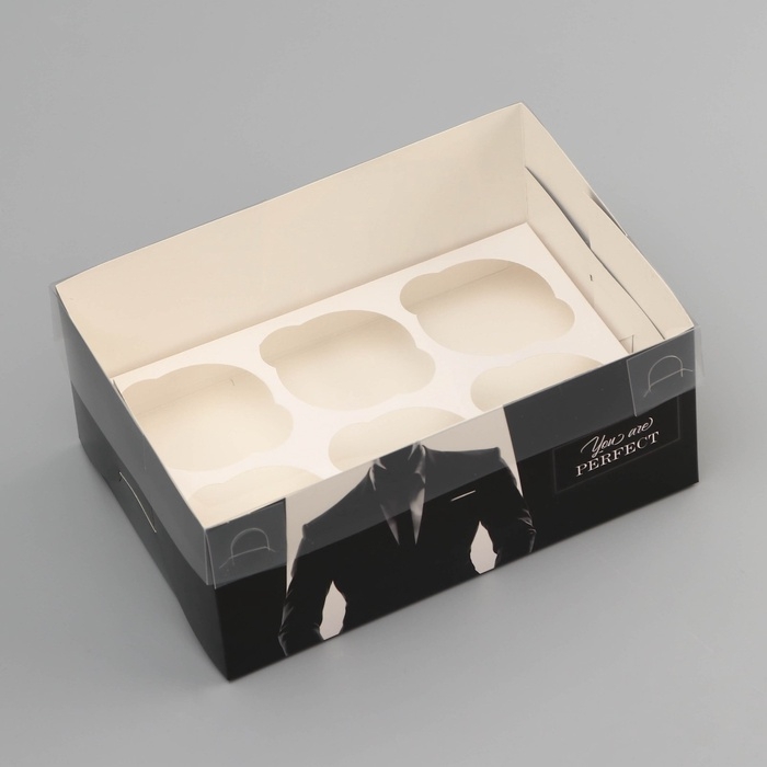 Коробка для 6 капкейков с прозрачной крышкой, "Мужской дляарок", 23 × 16 × 10 см, кондитерская упаковка