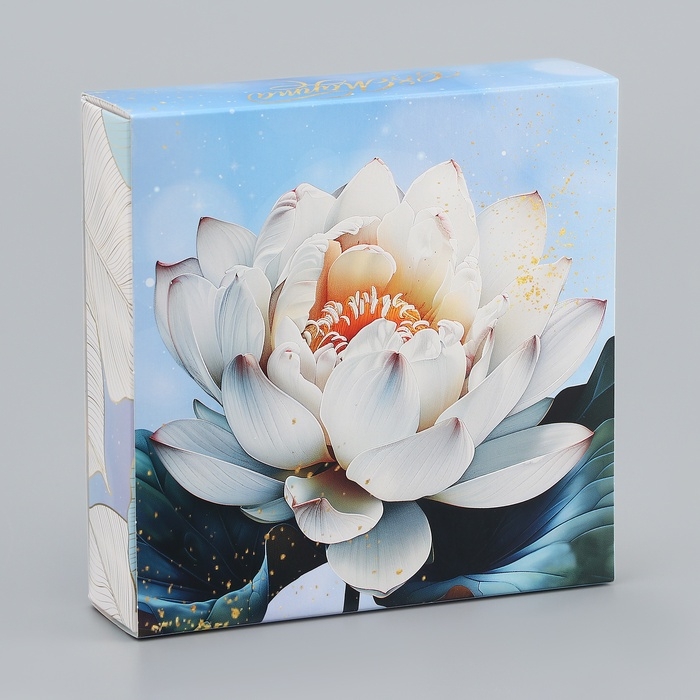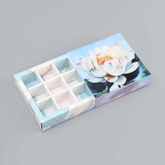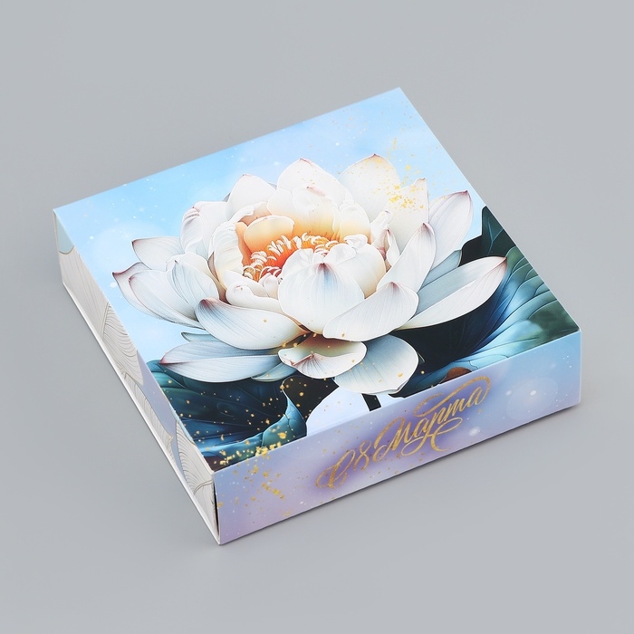 Коробка для конфет с обечайкой 9 шт без окна "С 8 марта" , 13,7 х 13,7 х 3,5 см. Кондитерская упаковка