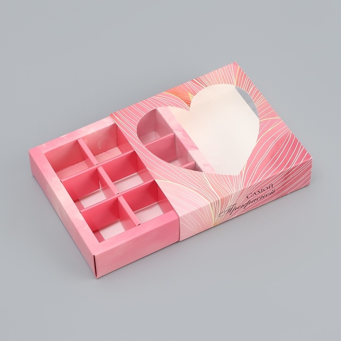 Коробка для конфет с обечайкой 9 шт "Сердце", 13,7 х 13,7 х 3,5 см. Кондитерская упаковка