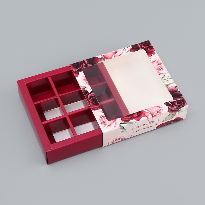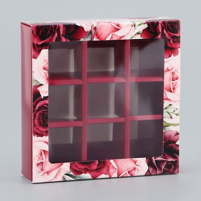 Коробка для конфет с обечайкой 9 шт "Прекрасных мнгновений", 13,7 х 13,7 х 3,5 см. Кондитерская упаковка