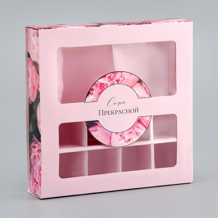 Коробка для 8 конфет + шоколад, с окном "Самой прекрасной", 17,7 х 17,8 х 3,8 см. Кондитерская упаковка