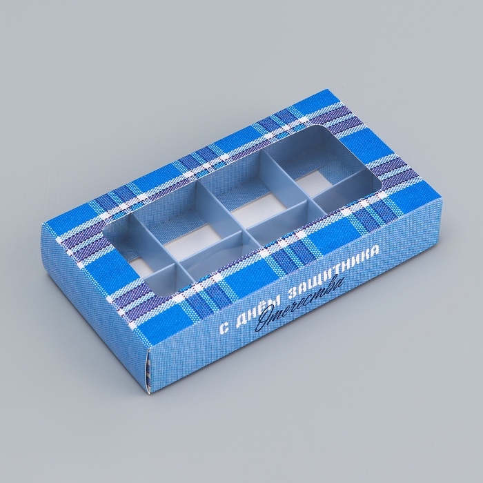 Коробка складная для 8 конфет "С Днем защитника Отечества", 9,8 х 17,7 х 3,5 см. Кондитерская упаковка