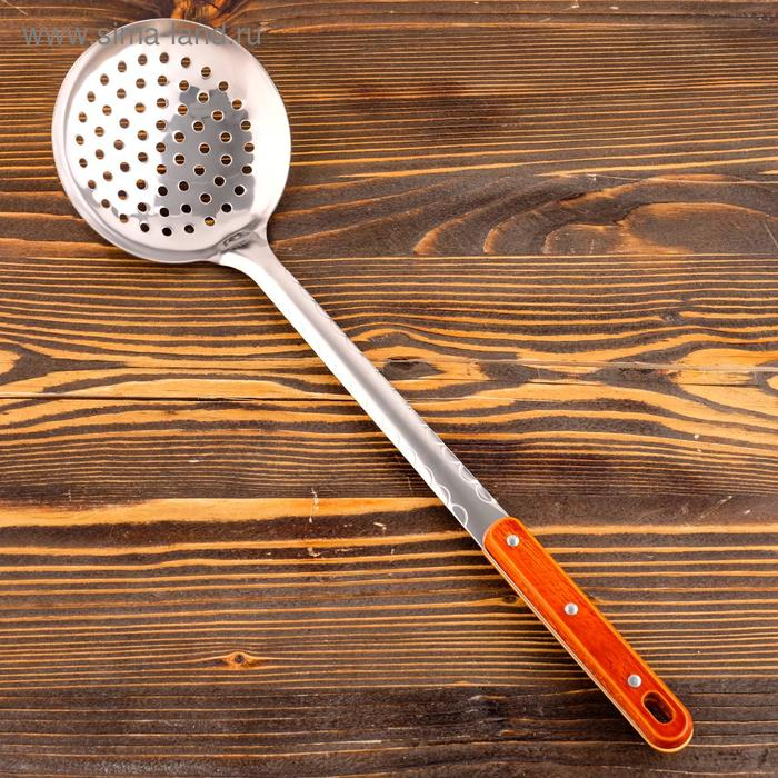 Шумовка для казана узбекская 43см, диаметр 12см, с деревянной ручкой