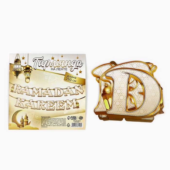 Гирлянда на ленте на Рамадан "Ramadan Kareem", 250 см