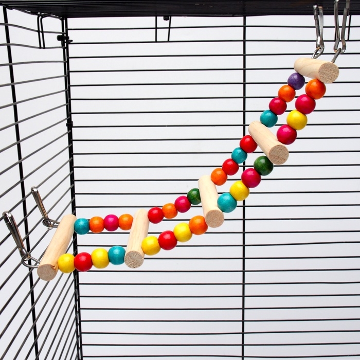 Игрушка для птиц "Лесенка с бусинами", 5 ступеней, 35 см, микс цветов