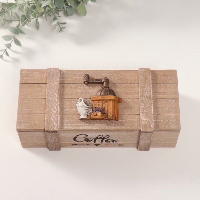 Шкатулка дерево с делениями "Кофемолка" 10,5х24х7,5 см