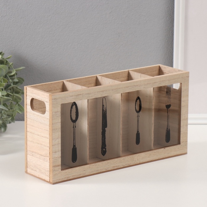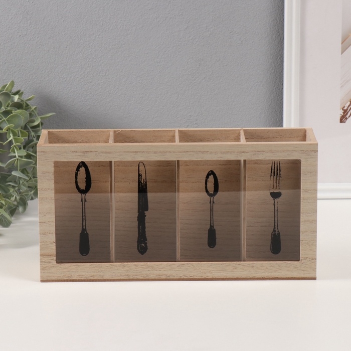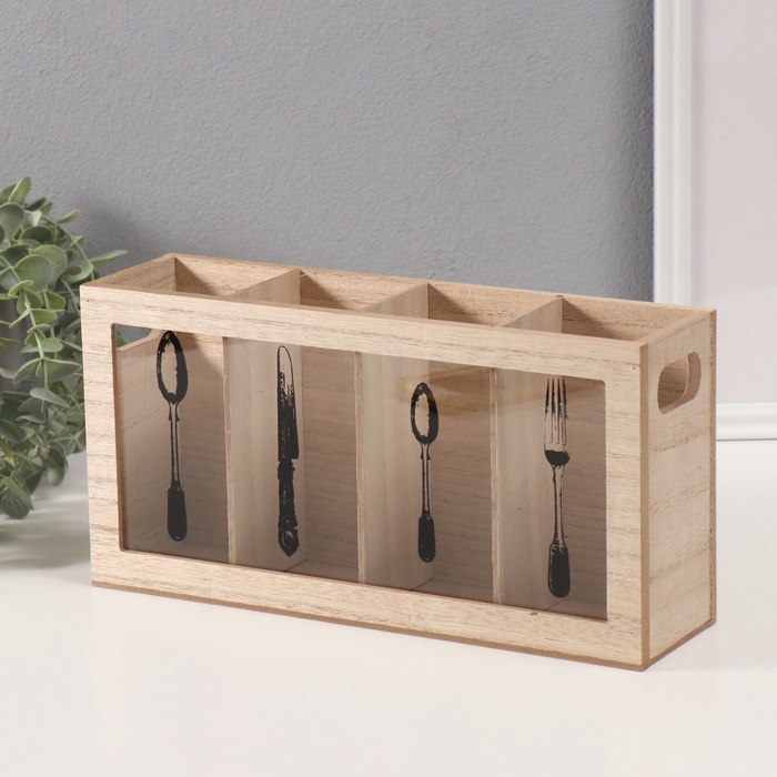 Подставка дерево с делениями "Вилка, ложка, нож" 8х30х15 см