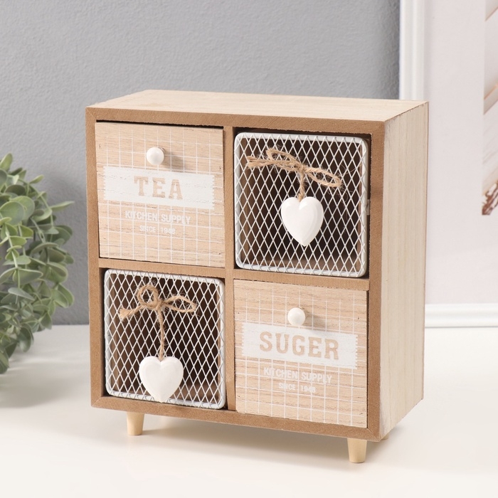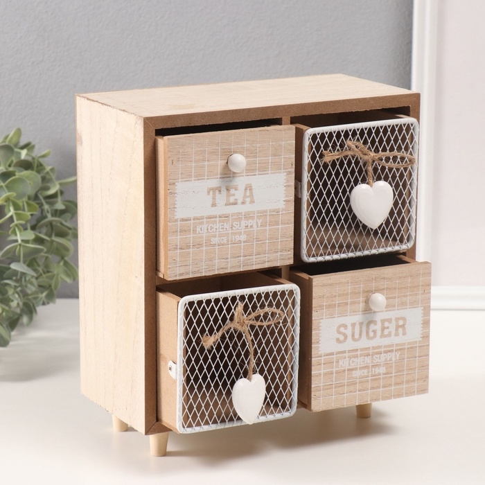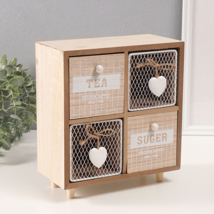 Шкатулка дерево 4 ящика "Комодик с сердечками" 10х20х23 см