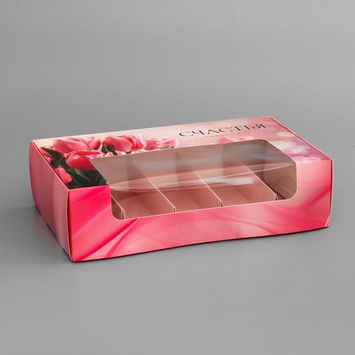 Коробка под 5 эклеров , кондитерская упаковка "Тюльпаны", 25,2 х 15 х 6,6 см